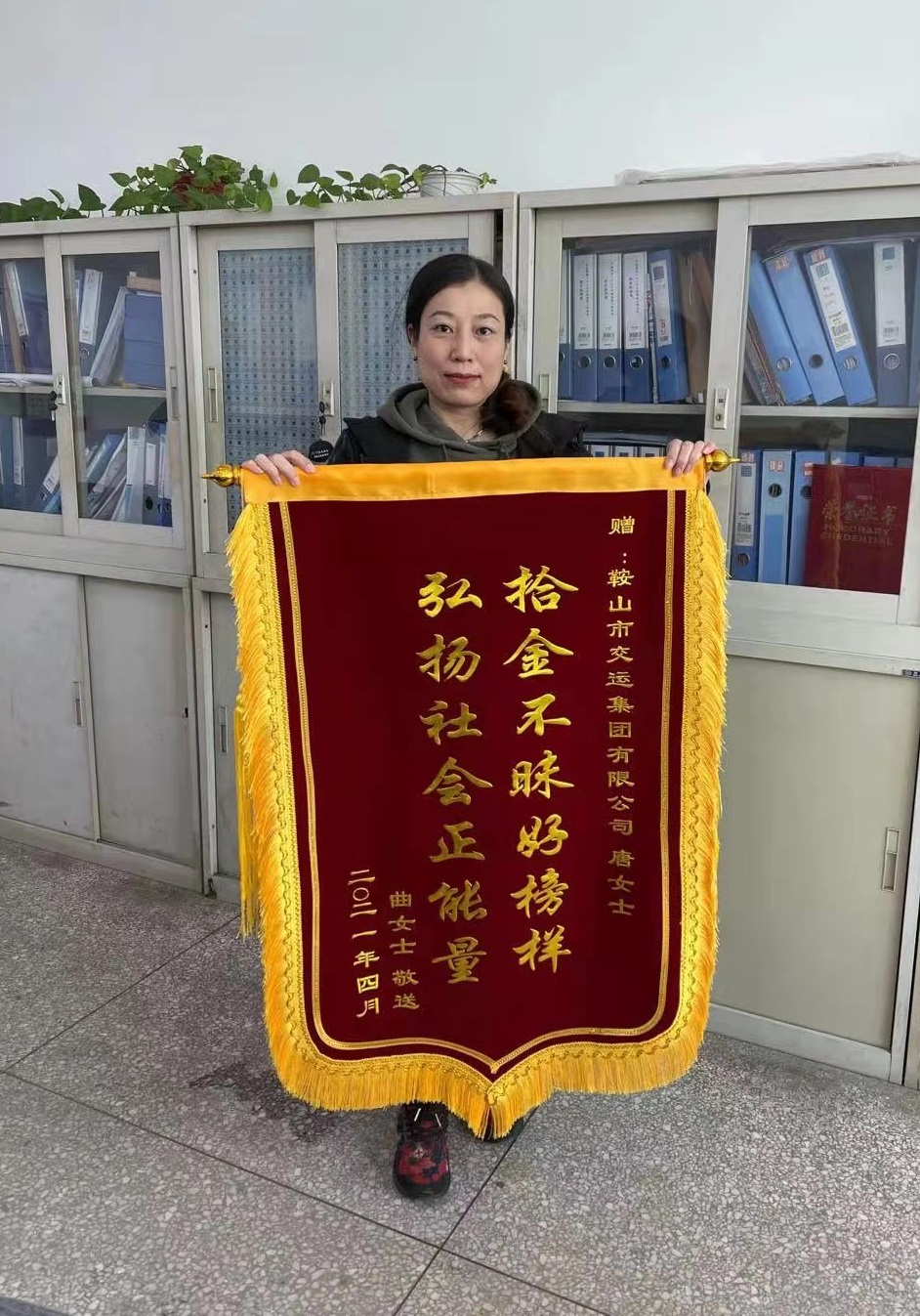 4月15日上午,市民曲女士帶刻有“拾金不昧好榜樣,弘揚(yáng)社會正能量”的錦旗,送到市交運(yùn)集團(tuán),感謝集團(tuán)員工“唐女士”第一時(shí)間里將拾到的價(jià)值萬余元的蘋果12手機(jī)交還給她。 據(jù)失主曲女士介紹, 4月10日,她在勝利會堂參加一場培訓(xùn)會,會議結(jié)束后,才發(fā)現(xiàn)把自己載有重要資料的蘋果12手機(jī)丟失了。除了手機(jī)本身的價(jià)值以外,手機(jī)內(nèi)還存有孩子高考的各種重要資料,一時(shí)心急如焚。她報(bào)著試試看的心態(tài),用別人的手機(jī)拔打自己的號碼,沒想到立即有人接聽,并表示馬上將手機(jī)送過來。見面后,曲女士再三追問這位好心人的姓名,只了解到“好心人”姓唐,并一再表示無需感謝。曲女士再三表示誠意,“好心人”也沒有留電話,只留了微信號碼。曲女士最終通過翻看其朋友圈,發(fā)現(xiàn)“好心人”是市交運(yùn)集團(tuán)員工。