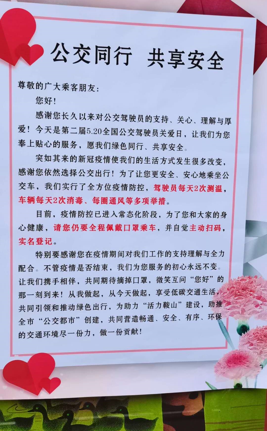 很多人都知道5月20日是諧音“我愛(ài)你”,但這一天還是全國(guó)第二個(gè)公交駕駛員關(guān)愛(ài)日。 鞍山公交駕駛員謝金紅根據(jù)自己20年的公交駕駛經(jīng)驗(yàn),首創(chuàng)“321斑馬線(xiàn)禮讓行人法”之后,越來(lái)